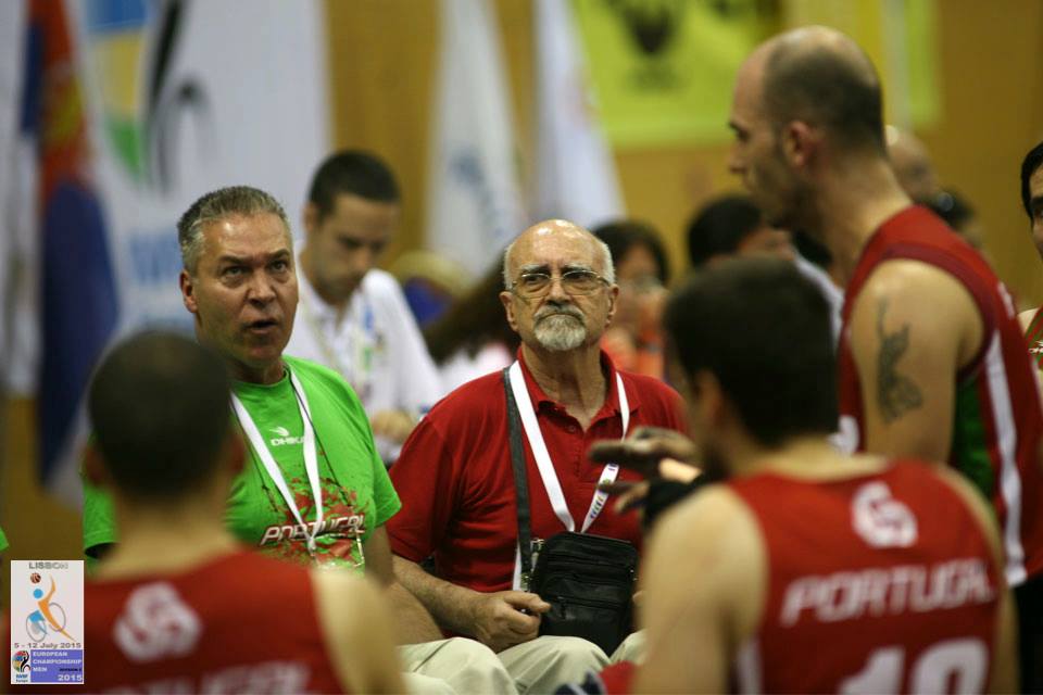 A participação não se confinou aos bastidores e, apesar da idade tardia para a iniciação – 41 anos -, dedicou-se à prática do BCR. “Não me sentia com motivação para dar início a uma nova modalidade desportiva com aquela idade. No entanto, como se diz “o que tem de ser, tem muita força””, confessa, atraindo-o também o “ambiente de sã convivência e camaradagem entre todos no BCR e no atletismo em cadeira de rodas”. Das incidências dentro de campo, onde assume não ter tido “uma grande valia”, jogando pela necessidade de “quórum”, no tocante à pontuação funcional, para a equipa recém-criada competir, resgata um episódio. “Guardo na memória um jogo da APD Sintra com a APD Lisboa, em Vieira de Leiria. Sintra estava a perder por cerca de 10 pontos, fui para o lance-livre (mal chegava ao cesto), esforcei-me ao máximo, ambos os lançamentos bateram na frente do aro, mas tombaram para dentro do cesto. Senti que a equipa de Sintra ficou galvanizada e acabou por ganhar o jogo e o torneio”, conta.