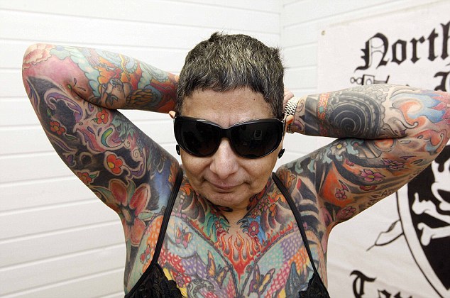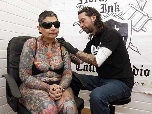 cobrir todo o corpo com as tatuagens. Ela diz que o marido e