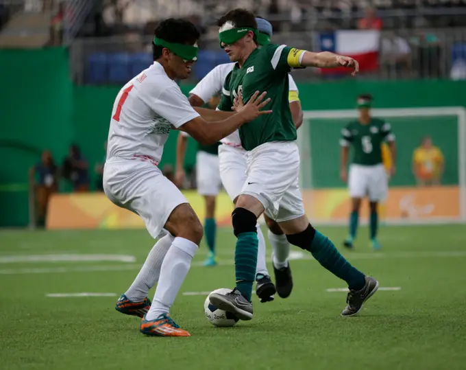 O futebol de cinco chegou às Paralimpíadas de Atenas, em 2004, para atletas com deficiência visual. As regras são semelhantes às da modalidade destinada aos praticantes não deficientes, com algumas modificações.