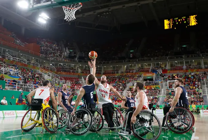 O basquetebol em cadeira de rodas faz parte dos Jogos Paralímpicos desde a sua primeira edição, em Roma, em 1960. Está concebido para atletas com deficiência física que os impeça de correr, saltar e girar.