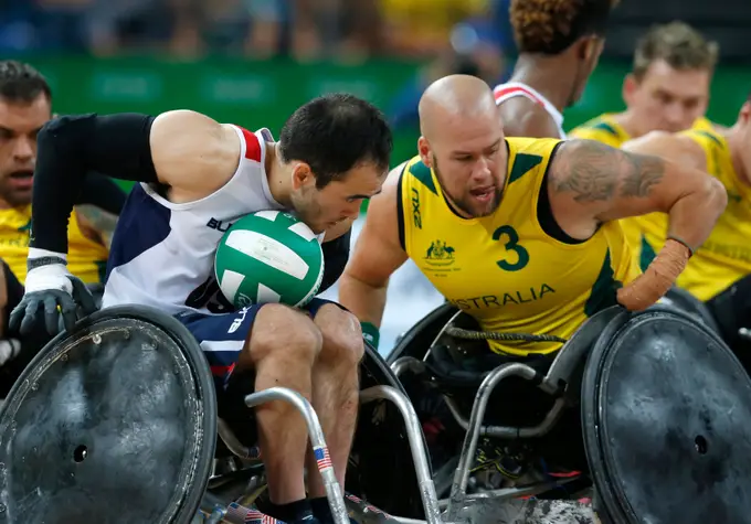 O rugby em cadeira de rodas esteou-se como desporto para medalha nos Jogos Paralímpicos de Sydney 2000.