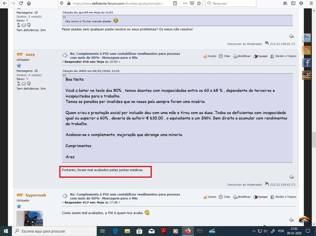 Eu não quero discutir absolutamente nada. Você é que me diz que as pessoas abaixo de 80% está tudo bom para trabalhar pois foram mal avaliadas pelas junta médica.