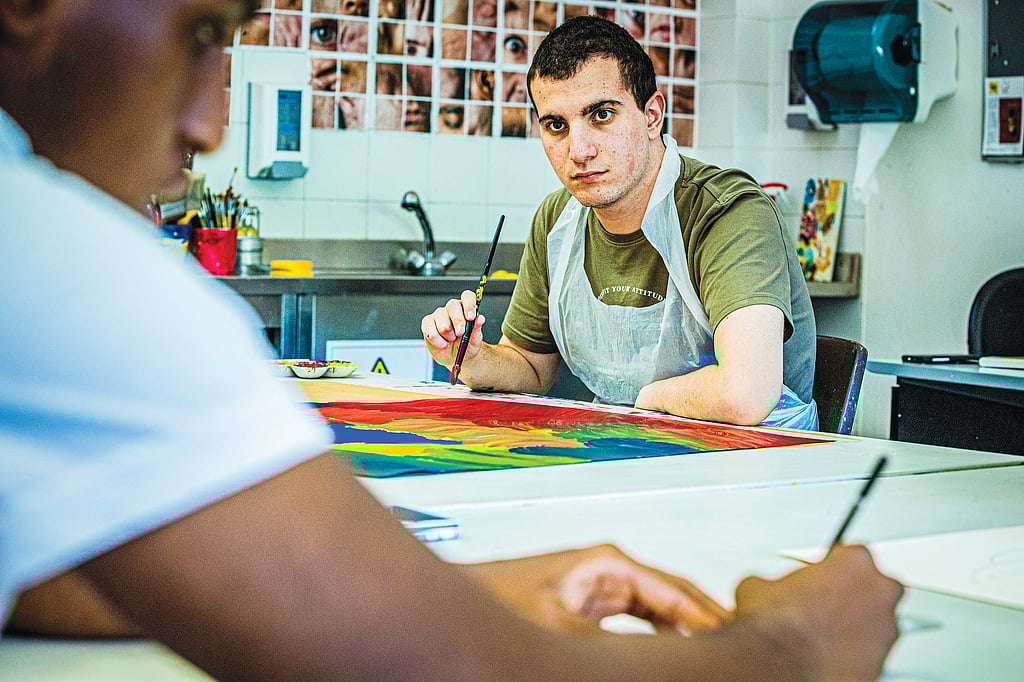 Quem entra no atelier detém-se perante o sussurrar dos pinceis e de lápis a riscar freneticamente em folhas de papel cavalinho que os presentes têm à sua frente. Dos cinco na sala, só Bernardo rompe o silêncio: “olha como te chamas?” É um dado importante para ele, que, em primeiro lugar, faz questão de repetir o seu nome completo, mas aparentemente esta é uma informação com relevância para os outros, que pousam utensílios enquanto esperam o desfecho da súbita conversa.