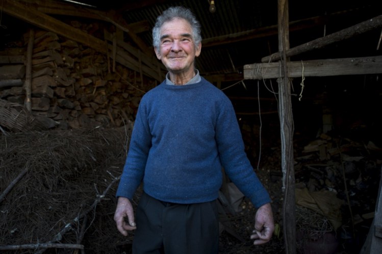 José não para, apesar de arrastar os pés. A casa tem dois pisos: em cima, habitação; em baixo, produtos e alfaias agrícolas. E ele quer mostrar provas da sua labuta: sacas de milho, garrafões de vinho, maçãs amontoadas. Oferece um punhado de castanhas, que guarda num balde de areia. “Quem diria que as castanhas se conservam assim?”, admira-se o cabo.