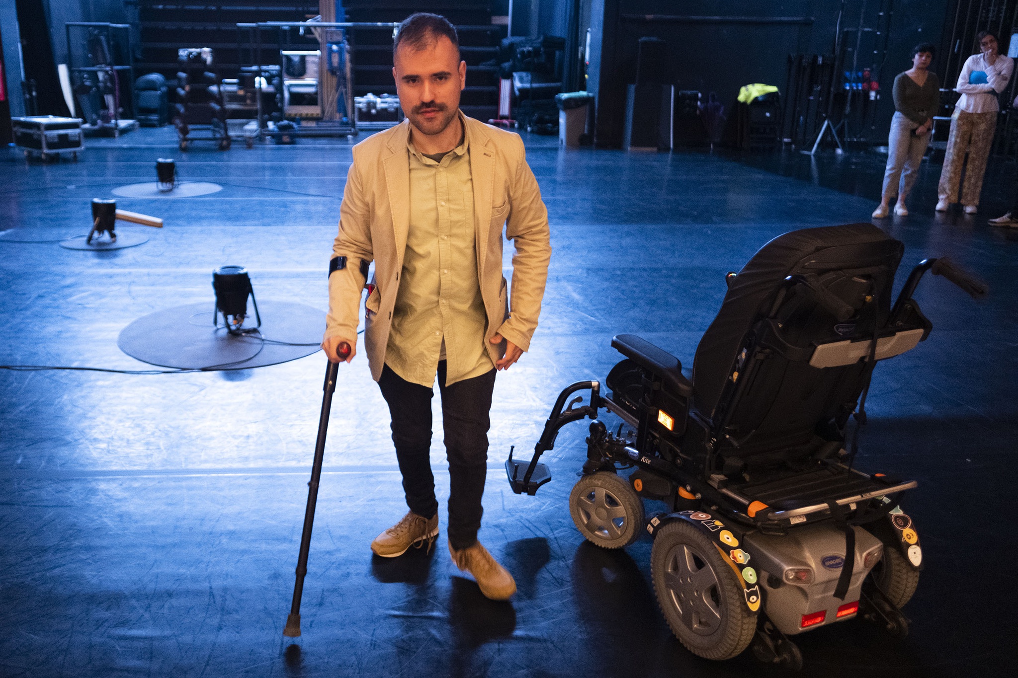 Inês Cóias não sente a sua deficiência em casa. Só a sente quando vai a sítios em que não pode entrar. A meio da sua formação académica, há quase cinco anos, um incêndio queimou parte do seu corpo e levou à amputação de uma perna. Inês prefere andar de cadeira de rodas, apesar de ter a possibilidade de caminhar, "por causa do cansaço e porque é mais simpático". Nos teatros, "praticamente nunca há camarins acessíveis". Consegue "desenrascar-se, mas há pessoas com deficiência que não conseguem". Antes do incêndio, não imaginava que os teatros, que em termos de acessibilidade "estão sempre prontos para receber o público com deficiência, nunca pensam que um artista com deficiência pode ocupar aquele mesmo espaço". "Todos têm barreiras", resume a actriz ao PÚBLICO.